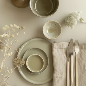 Столовая посуда: Полные наборы столовой посуды, изготовленные из высококачественных материалов, таких как фарфор, керамика, каменная керамика, стекло и меламин.